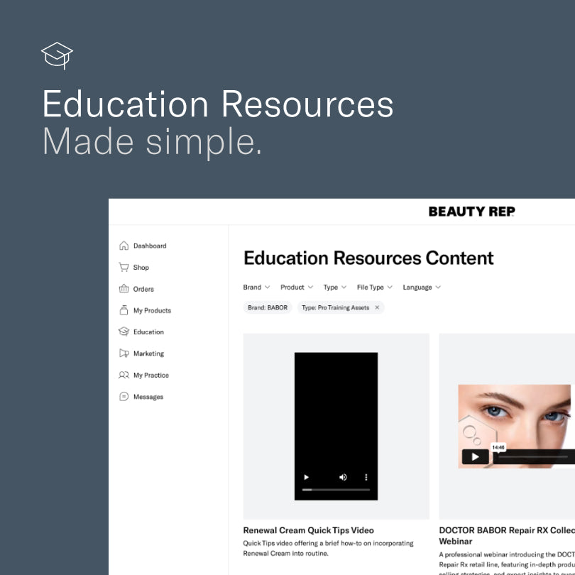 Beauty Rep offers aesthetic brands an all-in-one platform to showcase products, manage operations, deliver targeted education, support marketing sell-through and build meaningful practice connections effortlessly.